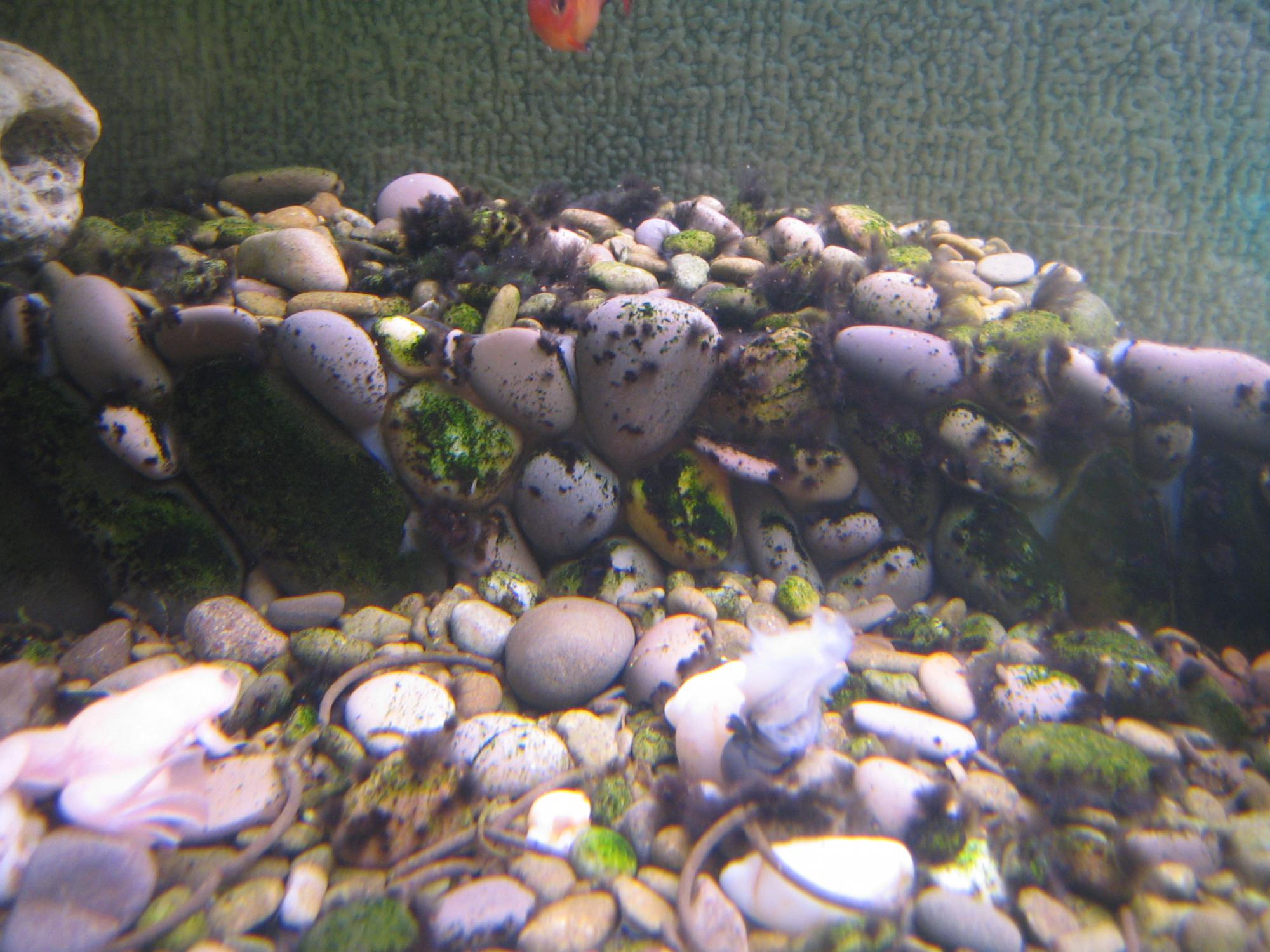 Решилась на перезапуск аквы, потому как паразитические водоросли покрыли все кроме рыб! Ситуация такова: аквариум, 100 литров, 2 лампы Сильвания по 24 вт, одна по спектру для рыб, вторая для растючек. Акве 2 года, последние 8 месяцев, весь грунт, растения, коряжки, начали покрываться черными пучками. Покрывает все что можно покрыть. Стекло покрывается зелеными точками, я их соскребаю сребком (они очень твердые) при подменах воды, но мне кажется их становится все больше и больше