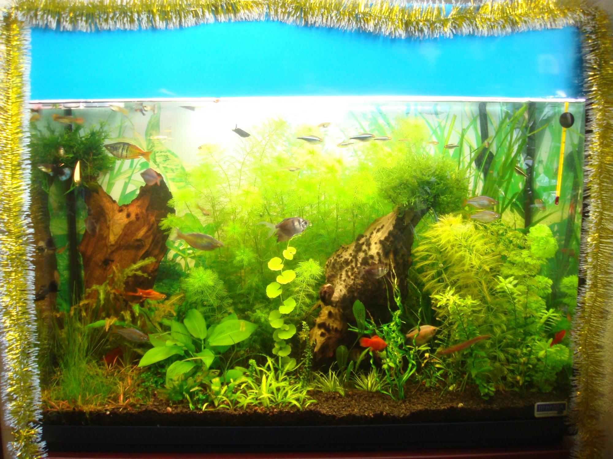 Аквариум 140л (80д*35ш*50г), 2 коряги( мопани слева, клен центр), растения: перистолистник, папоротник узколистный, папоротник яванский, гидрокотила белоголовая, ситняг, эхинодорус тенелюс, эх. красный, эх. горизонтальный, эх. крапчатый, эх. тропика, эх. везувий, апоногетон мадагаскарский, апоногетон живородящий, бликса японская, лимнофила, мох яванский, людвигия болотная. Рыбы: Бойсмани, неоновая радуж., гуппи, меченосцы, молли, черный неон, тернеция, акантофтальмус, вишневый барбус, хасемания, лорикария красная, анциструс, сомы крапчатые, пигмеи. Другие животные: неокаридины, креветки фильтраторы, разные моллюски. Грунт окатаный гранит 2-4мм, слой 5-6см. Вода - обратный осмос. Свет 3 сильвания гро-люкс 18вт, 1 хаген аквастар 20вт, режим с 7.30 до 11.00, с 15.00 до 21.00.