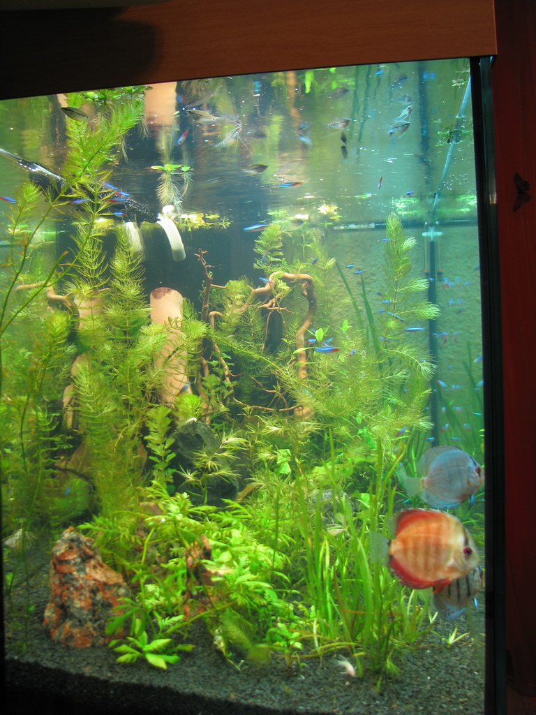 Самое интересное как купил эту банку, очень хотел дисков, потом решил взять неонов стайку и гурами мраморных и особо в акве не капаться, а тут на тебе - подарочек)))