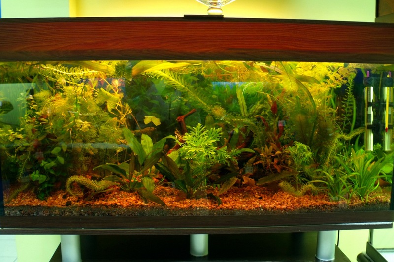 Порадовал видовой аквариум с растеними. Все вы знаете мое отношение к состоянию растений, поэтому рассматриваль пристально. Вердикт: водорослей не обнаружено. Дизайна как такового в этом аквасике нет, все просто нормально растет.