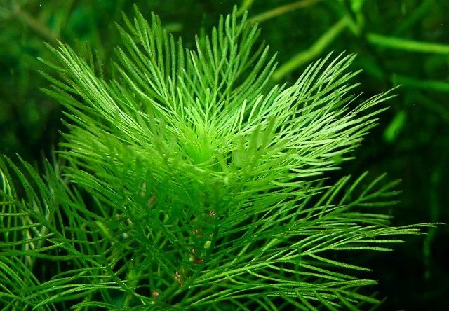 Роголистник темно-зеленый (Ceratophyllum demersum) необыкновенное растение, которое способно принести немало пользы аквариуму. Особенно тому, который или недавно был запущен или в котором очень много рыбы, или там где старый заиленный грунт, так-как растение является очень эффективным очистителем воды от мути и нитратов. В аквариуме его можно просто оставляют плавать на поверхности воды или посадить на задний план. Роголистник хорошо растет при любой температуре, нормально растёт в мягкой воде, но намного лучше в воде средней или в жёсткой. Световой день чем дольше, тем лучше.