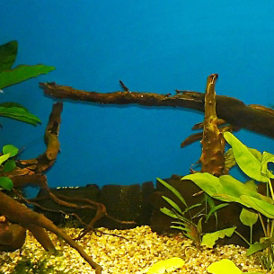 №3 Красивая работа, привлекающая своей "дикостью" - хорошо передано ощущения дна тропической реки. В целом грамотно использованы растения (не понравились разрозненные куртинки мхов на дне). Отлично подобраны рыбы (хотя по фото этого и не видно). Но мне кажется, данная композиция лучше бы смотрелась в аквариуме пониже, а то чересчур много свободного пространства остается сверху. Из недостатков: мне кажется, что использование прямых углов в расположении коряг немного портят общее впечатление:
