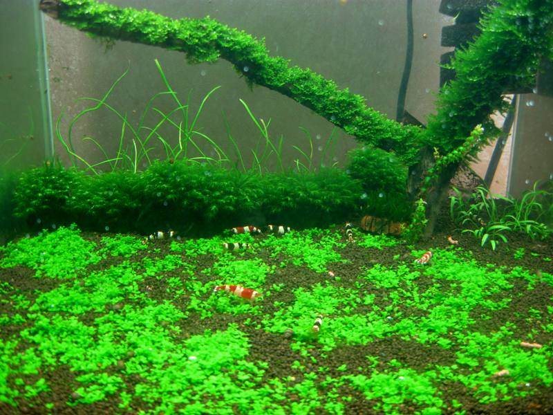 Заказал аквариум размерами 33х33х24, специально для креветок Блек кристалов, с растений мхи, у задней стенки эхинодорус везувий, на данный момент есть уже пополнение, вот собственно фото, и видео