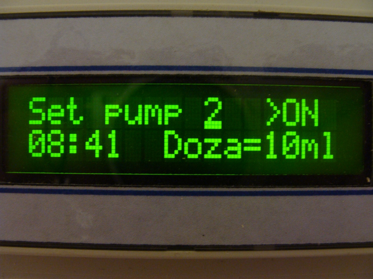 Контроллер был разработан специально для управления приборами типа ULKA. Контроллер формирует импульс амплитудой 220в. и длительностью достаточной для одного такта хода поршня насоса. Таким образом насос работает в штатном режиме. Процессор контроллера рассчитывает количество импульсов и интервал между ними, в соответствии с выбранными режимом подачи и его объёмом задаваемыми пользователем. Сам прибор собран в пластиковом стандартном корпусе под DIN-рейку. Управление производиться с помощью четырёх кнопок. Информация выводится на ЖК дисплей. Встроенный аккумулятор энергонезависимой памяти, позволяет хранить настройки при отключении света в течении 2-ух месяцев. Имеются часы и календарь реального времени.