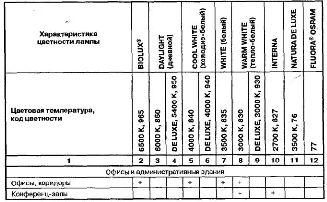 В силу своих физических особенностей ЛЛ имеют одно очень важное преимущество перед лампами накаливания: возможность создавать свет различного спектрального состава – теплый, естественный, белый, дневной. Не случайно существуют специальные рекомендации по выбору типа ЛЛ (цветности света) для различных областей применения.