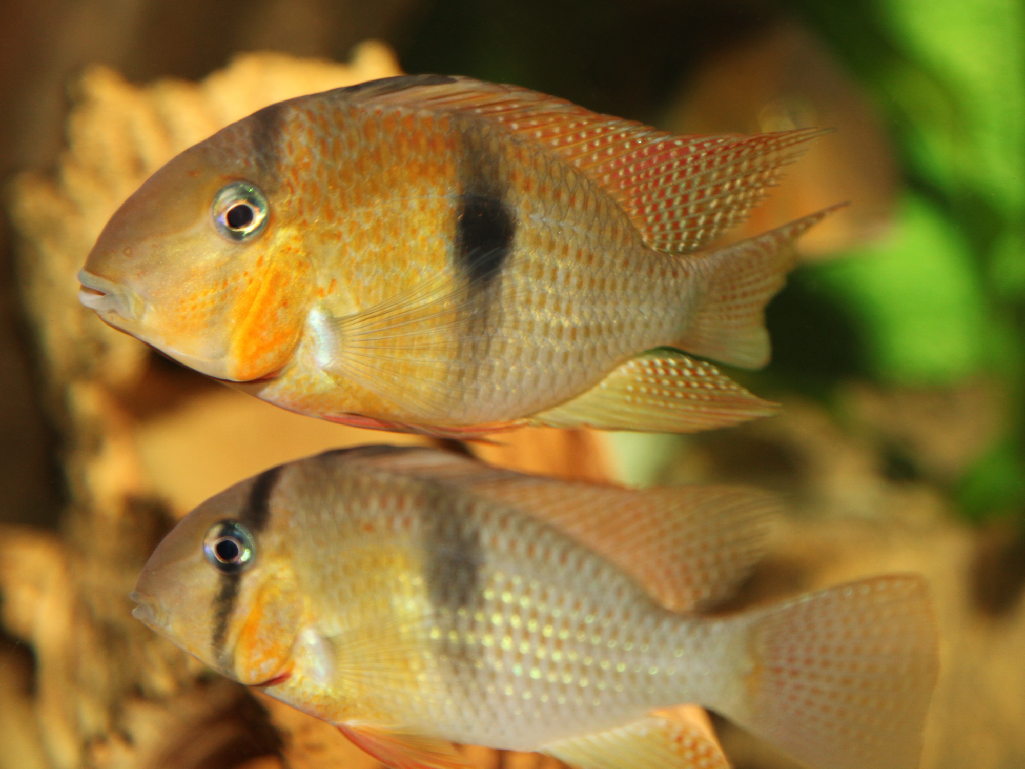 Есть Гвианакара Геи но не хочется, так как есть риск к скрещиванию, а еще не хочу войны за субстрат для нереста, он у них одинаковый закрытые объемы, с небольшими входными отверстиями типа полого исскуственного камня. Понятно что когда им припечет, то отнерестятся и в горшок.Значит пока не печёт.