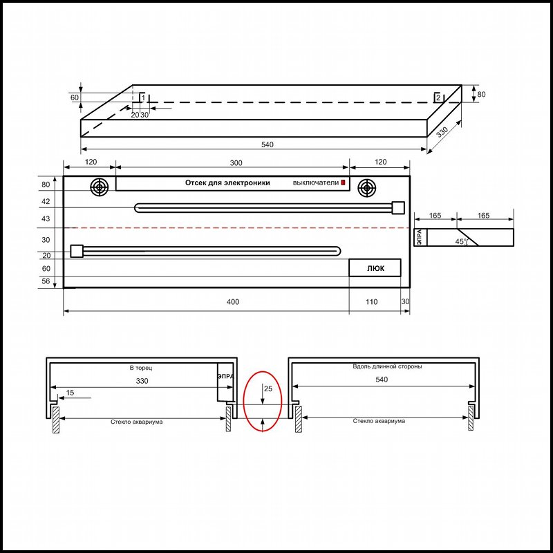 - предназначена для прямоугольного аквариума размерами 540х330;