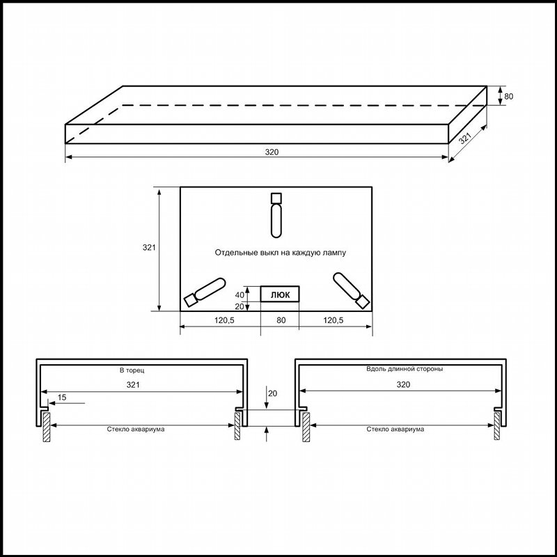 - предназначена для прямоугольного аквариума размерами 320х320;