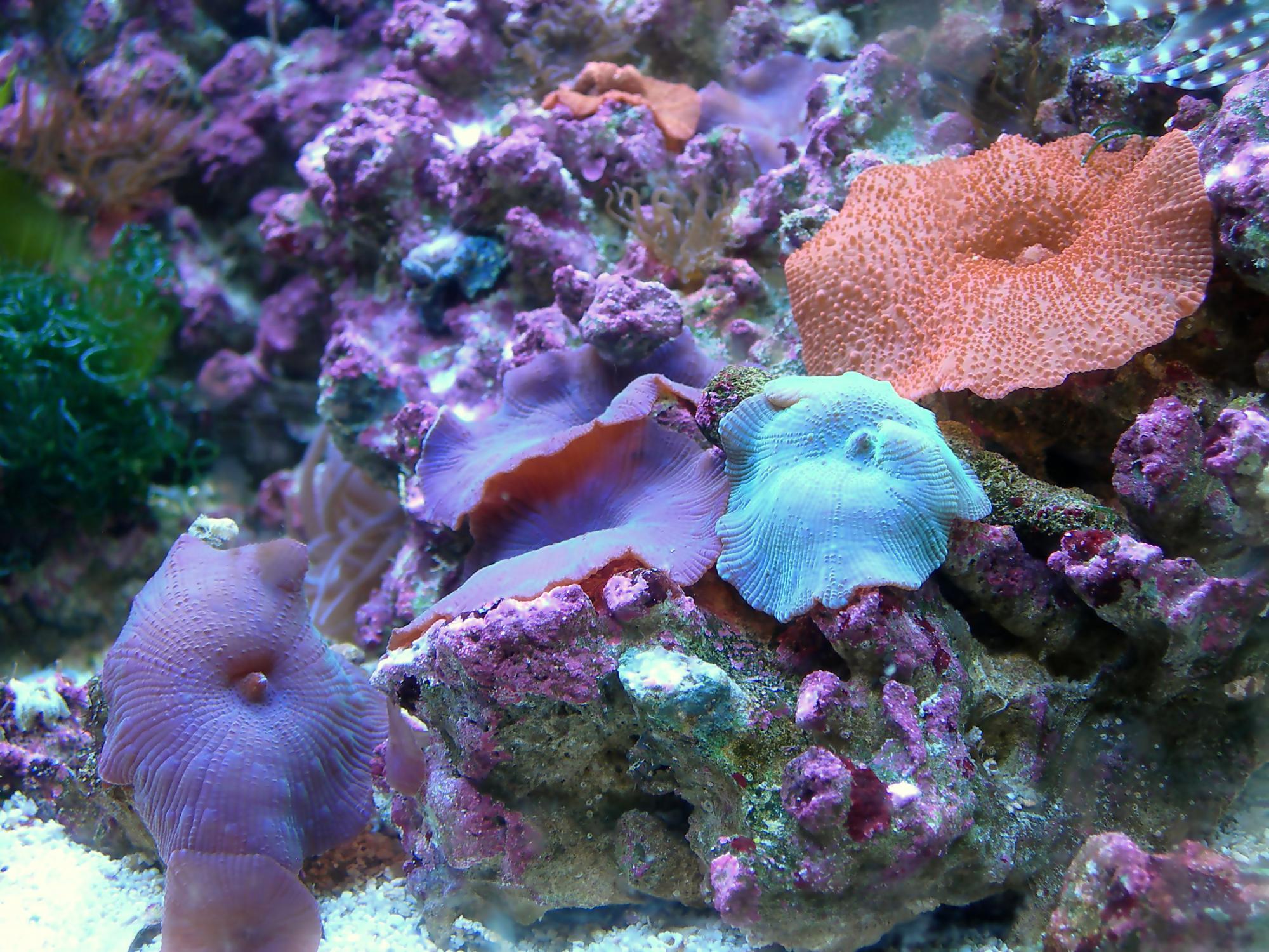 На сегодняшний день- халимеда прёт как подорванная, Botryocladia leptopoda старается её догнать  . Еженедельные подмены воды в количестве 25л(ради коврика). Аиптазию намеренно не трогаю- планирую подсадить Хелмона.