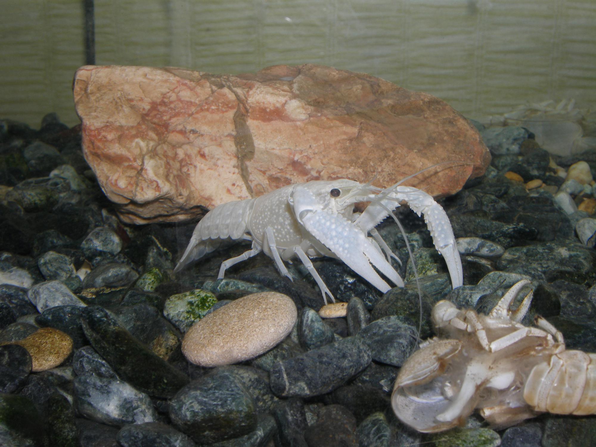 На фото рак через 2 суток после линьки. Если вода в аквариуме чистая то рак идеально белого окраса. Живут давно, разводятся прекрасно. Всеядные, смерть всем водорослям, на меня уже с искоса поглядывают.