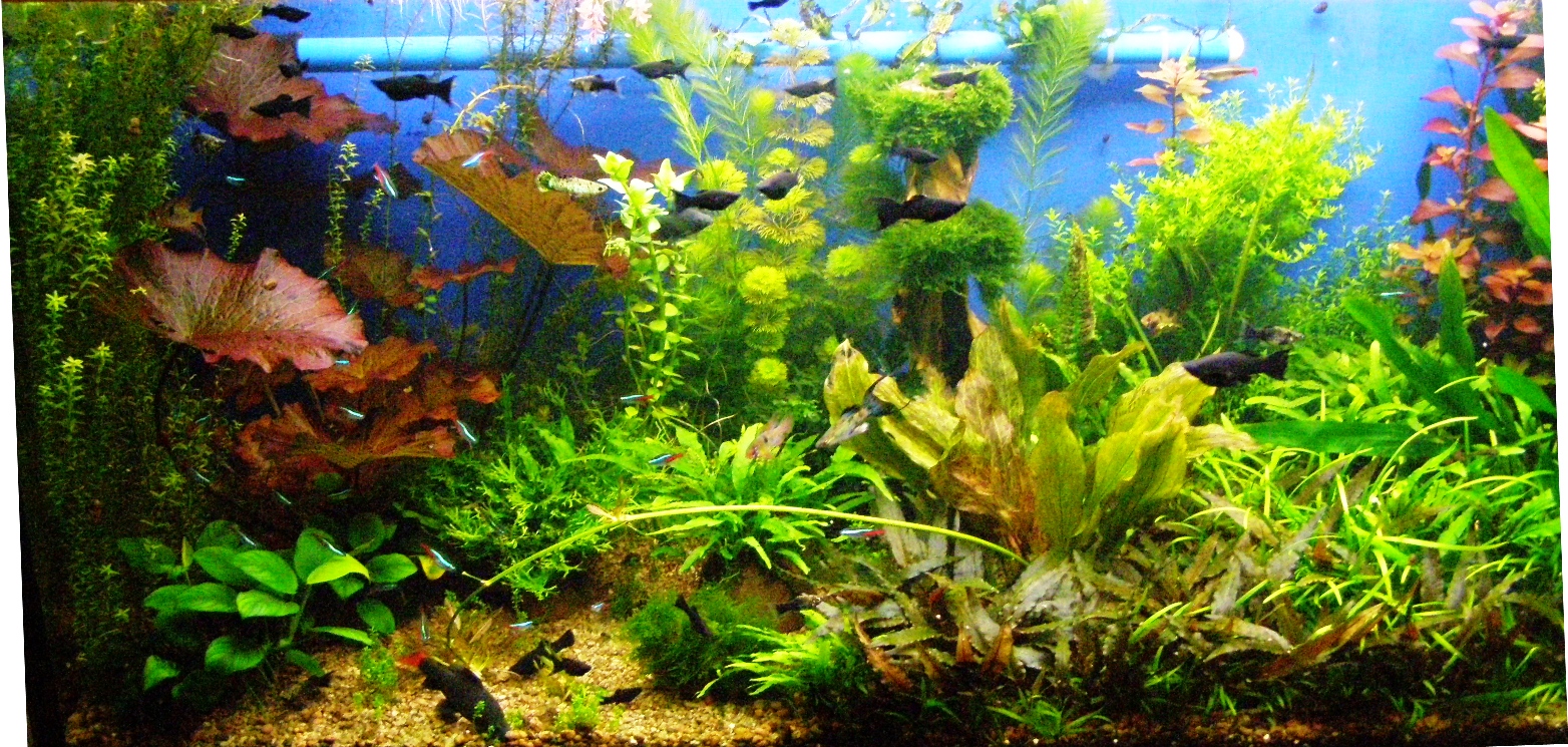 Второй раз намешал свое УДО, добавляю. Микро - в комплексе по 3мл на 100л - лью 10мл ежедневно. Азот(довольно концентрированный раствор) - 15 мл (довожу концентрацию до 30мг/л - к вечеру выедают, по тесту - меньше 10мг/л). Фосфаты не вношу - и так избыток - между 1-0,5мг/л - за счет жизнедеятельности рыб, креветок, улиток и разлагающейся органики в гуще растений. Да и рыб кормлю живым мотылем и подкармливаю таблетками для анцитрусов (едят все - в первую очередь ацики и молли, да и все остальные, даже рамирезки...).