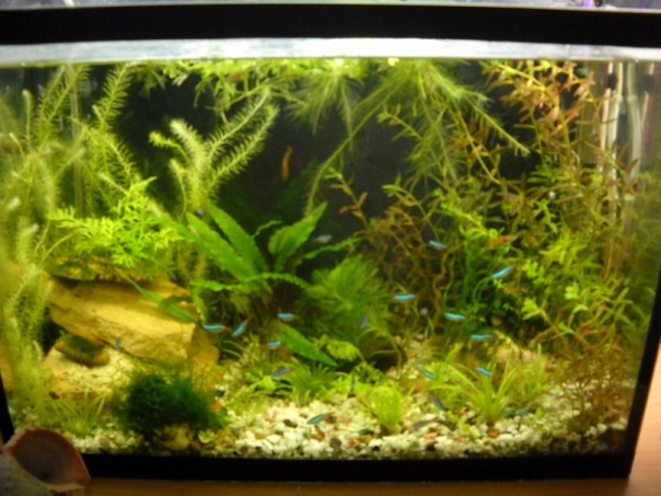 похвастаюсь аквариумом, в котором поселила ваших креветочек и эндлеров(только они не оч хотели фотографироваться)