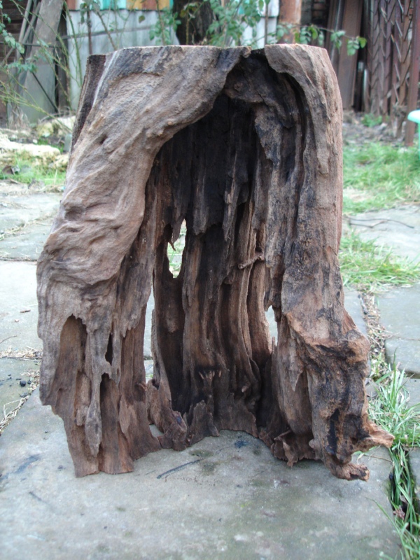 Верхняя часть коряги размер высота 36х26см.(Обработанная) готовил себе в акву. Во внутреннюю часть этой "деревяхи" можно легко спрятать внутренние фильтр и обогреватель. На последнем фото в коряге уже спрятан обогреватель и внутренний фильтр с большой мочалкой. Ставил в акву ..рыбки с удовольствием и большим интересом проплывают в расщелинах. С временем идея изменилась и решил обменять на рыбок -