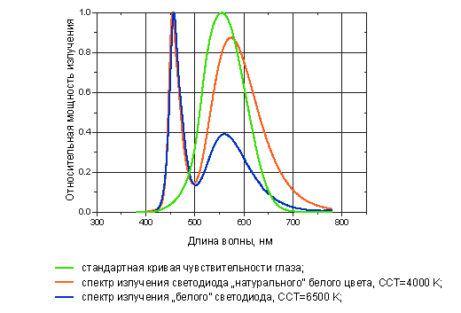 Спектр белого к тому же нагло сфальсифицирован и вытянут в люминофорном участке.