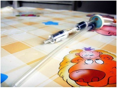 Дожигатель паров кислоты. Он же быстроразъем. Представляет из себя две половинки от шприцов, вставленные один в другой (дальше будет в сборе- здесь- та часть, в которой собственно дожигатель- поролон, пропитанный содовым раствором)