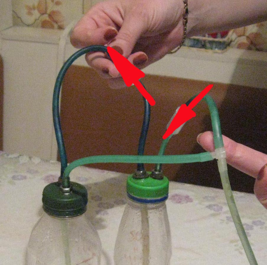 Запуск, он производится очень просто, перекрываем кран подачи СО2 в аквариум и сдавливаем рукой бутылку с кислотой, выдавив немного ее в соду, реакция начинается мгновенно и давление в обеих бутылках резко увеличивается не забыв Закрыть краник.