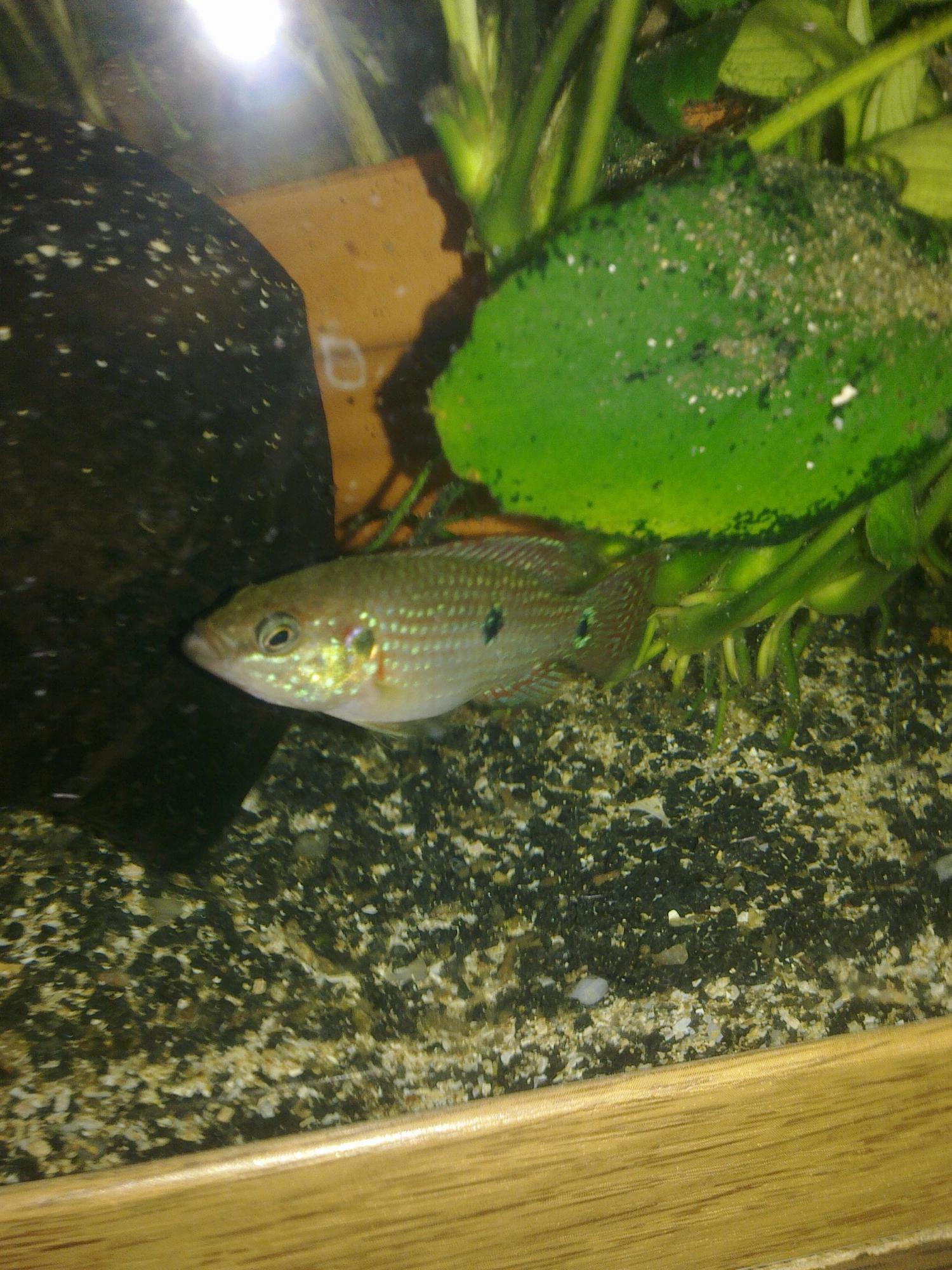 У меня наверное какая то порода, поскольку что родители, что дети очень синие.))) То есть голубые точки, намного более плотно посажены чем у обычных красавцев. И малек, покраснеть не покраснел, а сине зеленым переливается будь здоров.