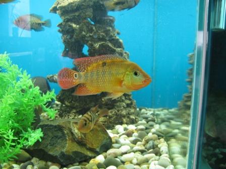 А вот с самцами совсем засада. Один около 11-12см (на последнем фото - он!), а второй и 10см, не набирает У меня сразу вопрос к знатокам Фест: " Есть шанс, что самец со временем догонит по размерам самку и сможет взять ее и ситуацию в аквасе под свой контроль?" Последнее время он стал хорошо и жадно кушать, раньше у него были проблемы с питанием (плохо или вообще не ел)...