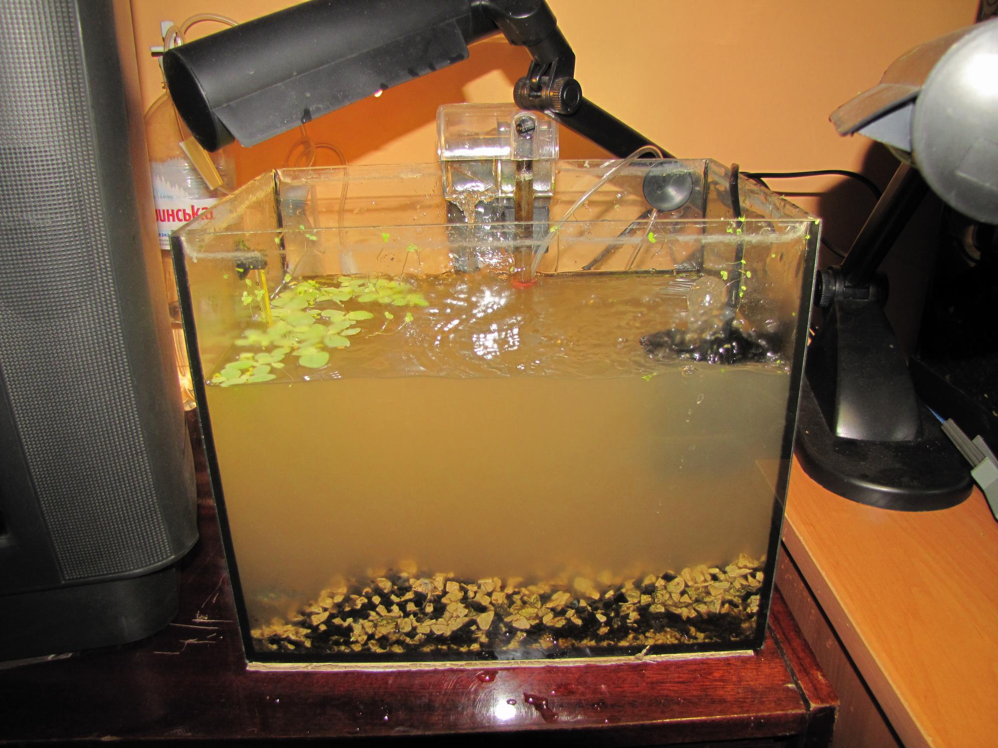 Рыб конечно же не запускал. Валиснерия пузыряет очень прилично. Чуть-чуть роголистник. Все остальные пока ждут.