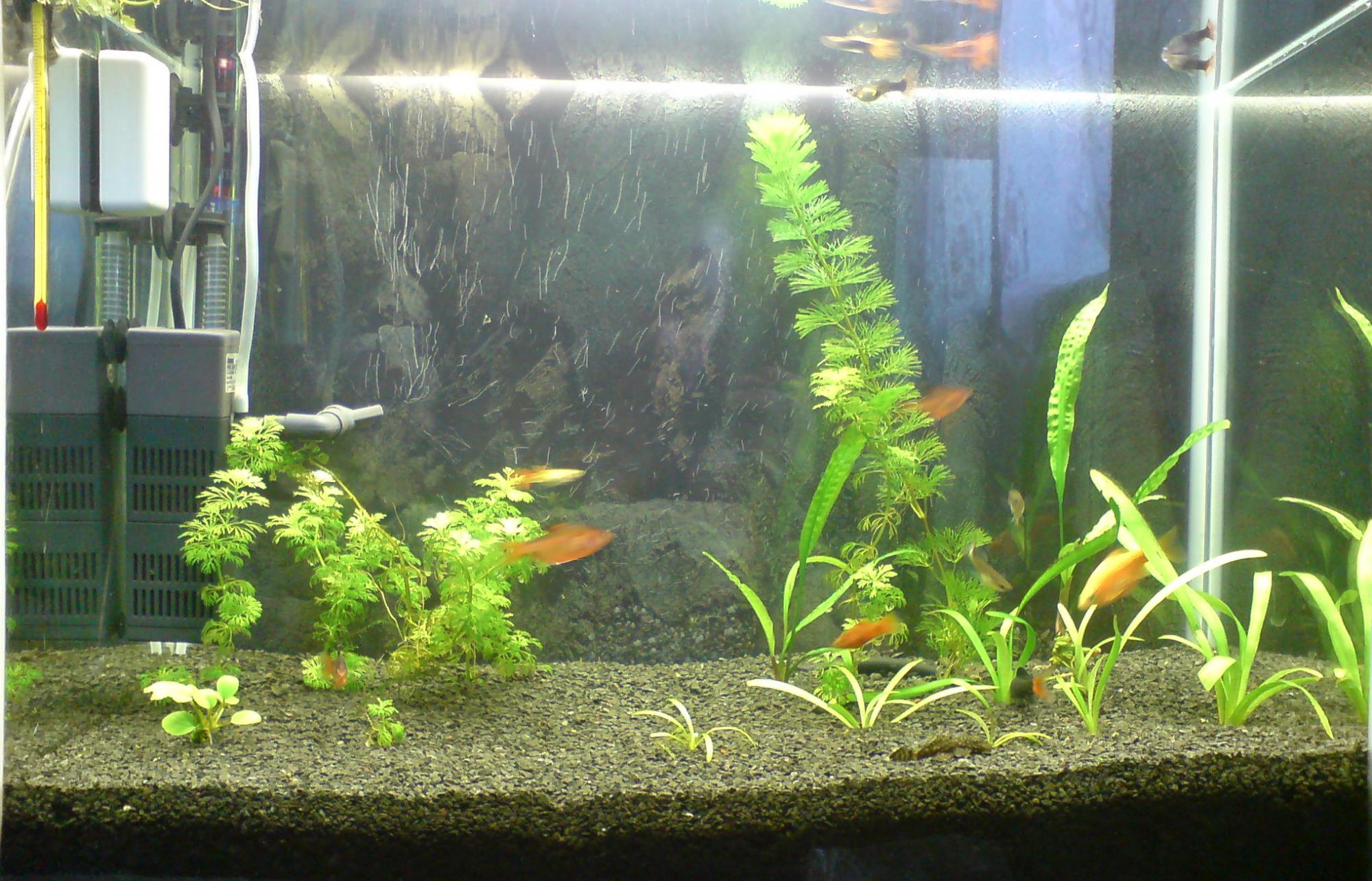 население ----> 2 анциструса, 1 молинезия, 2 лабео, 3 минора, 1 огненный барбус и около десятка гуппи