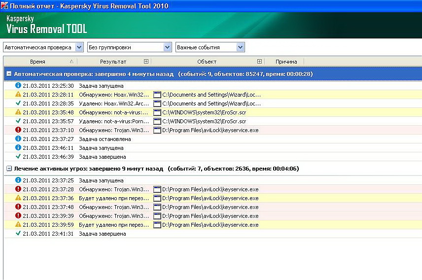 Полный пипц это а не Нод...При скнировании Ремовалом от Каспера в итоге получился такой вот отчетик  .Интернет при этом вышел на 4Мбсек уже! по сравнению с полумегабитами это прогресс! И появилось возможность его отключить с трея  )) Вот такие эти червяки вирусы...-эт вам не мотыль с трубочником!  ))