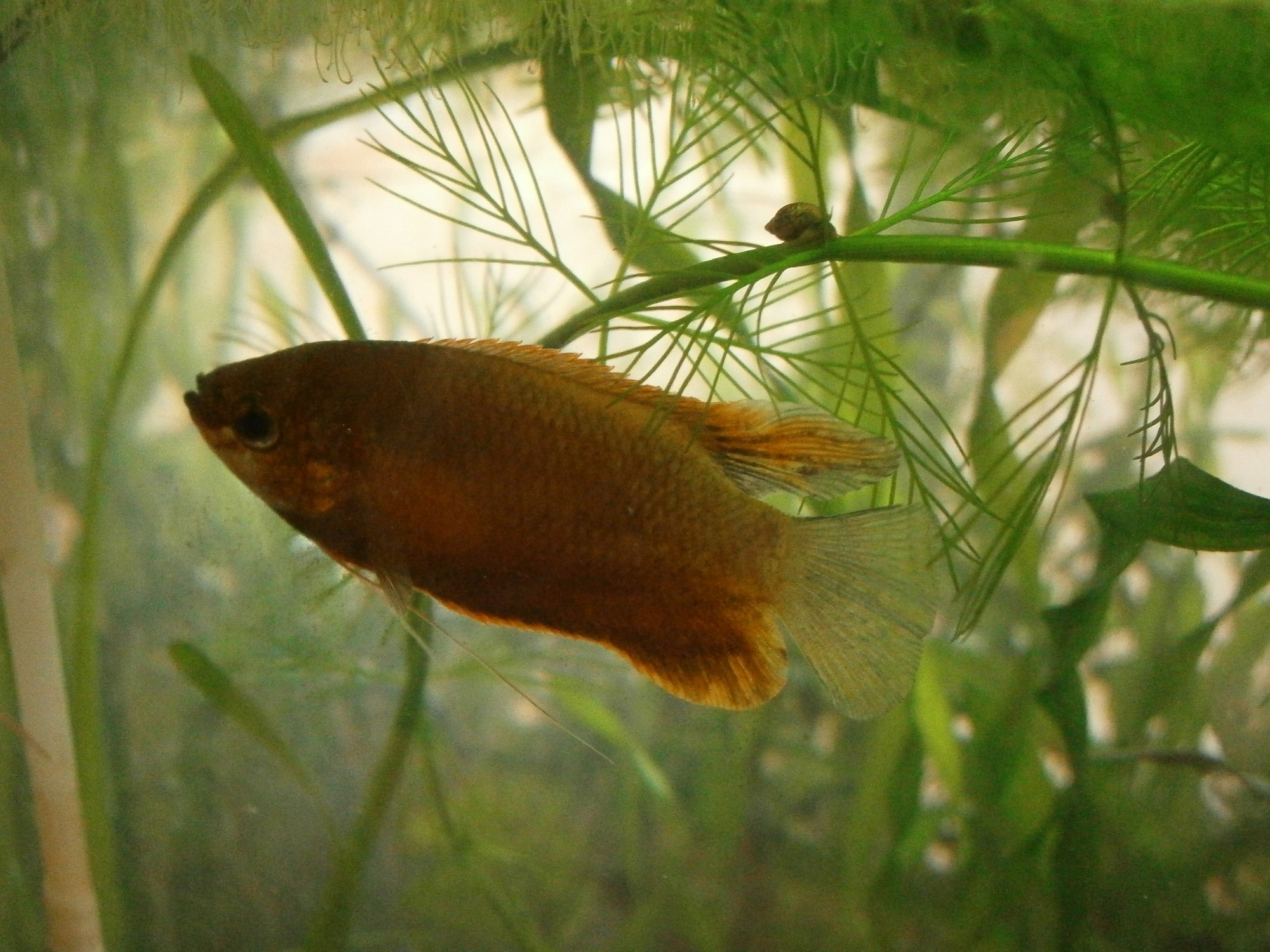 Вот мой красный медовый гурами (за работой), брала у Stenly в прошлом году. Хотелось бы посмотреть у нас красного лялиуса