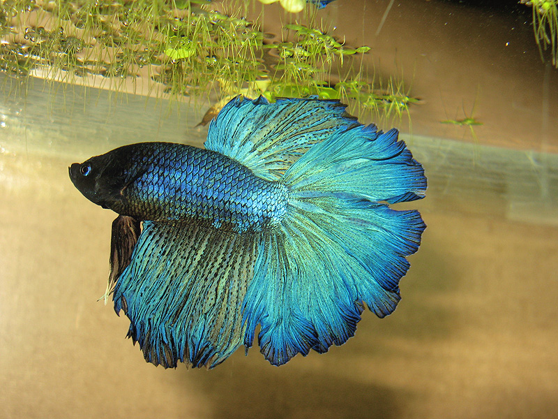 Еще один мой петушок. Интересный экземпляр. До сих пор не могу четко определиться с его цветом. При получении был чисто-зеленым. Сейчас он переливающийся зелено-синий, или темно-голубой, край хвоста чисто-синий. При съемке со вспышкой цвет иной - действительно зеленый. Плавники у него долго не росли, увеличиваться в размере начали почему-то лишь недавно. Крупненький. Кстати, подскажите, пожалуйста, как правильно назвать эту форму, учитывая такой вот интересный край хвоста.