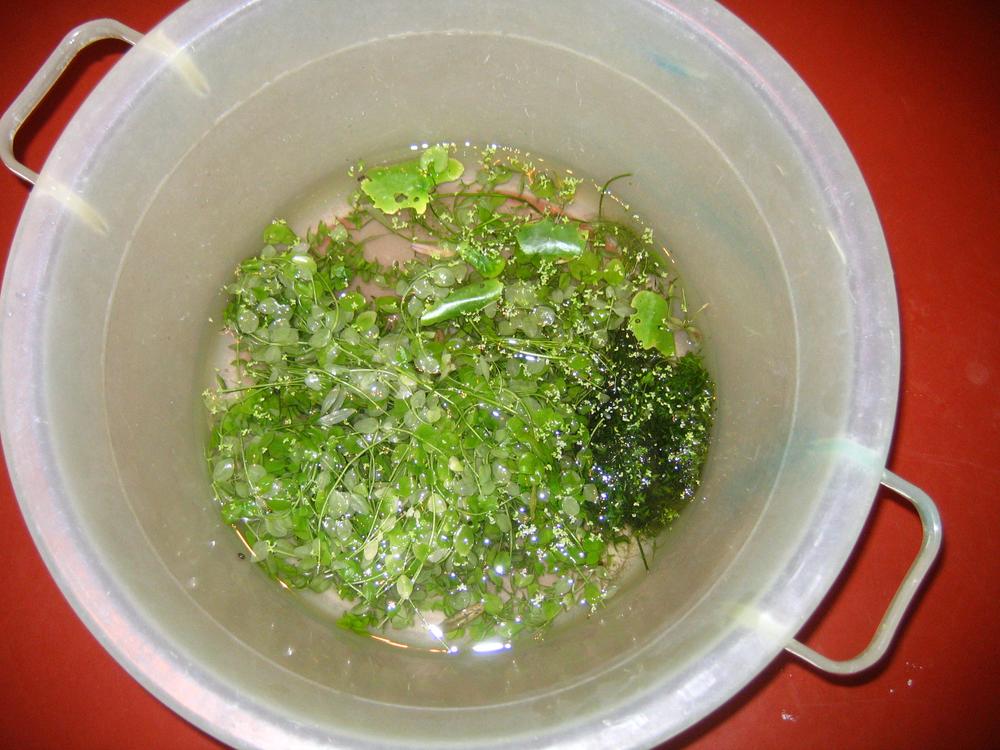 После прополки есть тазик гигрофилы полисперма, людвигия «Рубин», криптокорина желтая, ротала индика — достаточно, чтобы 30л аквариум засадить так, что рыбе проплыть негде  ))))