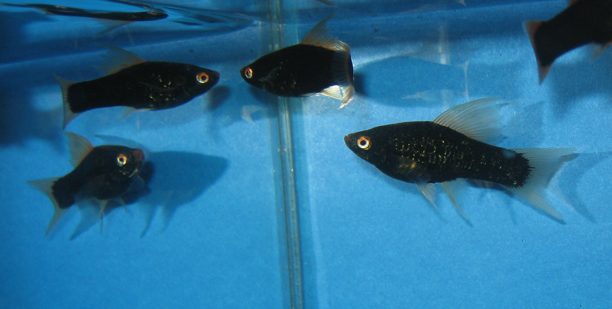 1. Меченосец Черный Вильчатый (тело черное плавники и хвост красные)