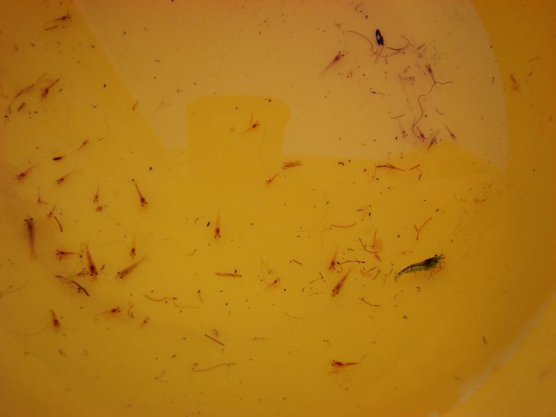 Сегодня после чистки фильтра и отлова из него креветок обнаружил среди черриков вот такого необычного?! Фиолетового или бирюзового цвета. В акве кроме черриков нет никаких других. Что с ней случилось???