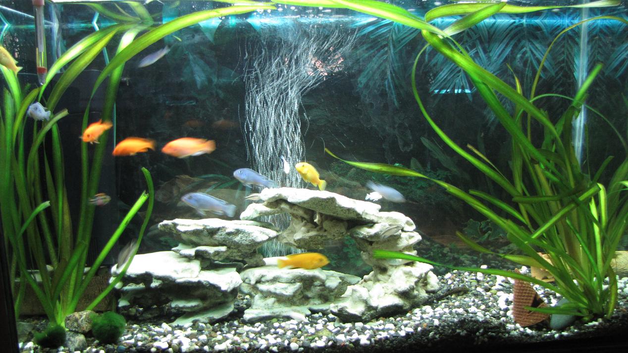 Камней еще нужно добавить, как минимум в 2 раза больше. И "попугайчика" (Pelvicachromis pulcher), видно на фотке, лучше убрать от малавийцев, заганяют.
