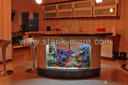 Акватика берется и за изготовление аквариумов небольших объемов, и за технически сложные проекты. Очень часто к нам обращаются дизайнеры, архитекторы и мы совместно воплощаем в жизнь иногда кажущиеся на первый взгляд совершенно безумные идеи.