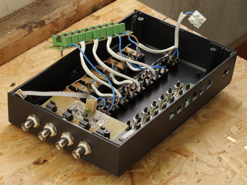 К одному контроллеру можно подключить несколько таких плат (блок питания делается только на одной). Все платы соединяются с контроллером по шине 1-Wire (обычный телефонный/модемный четырехжильный кабель).