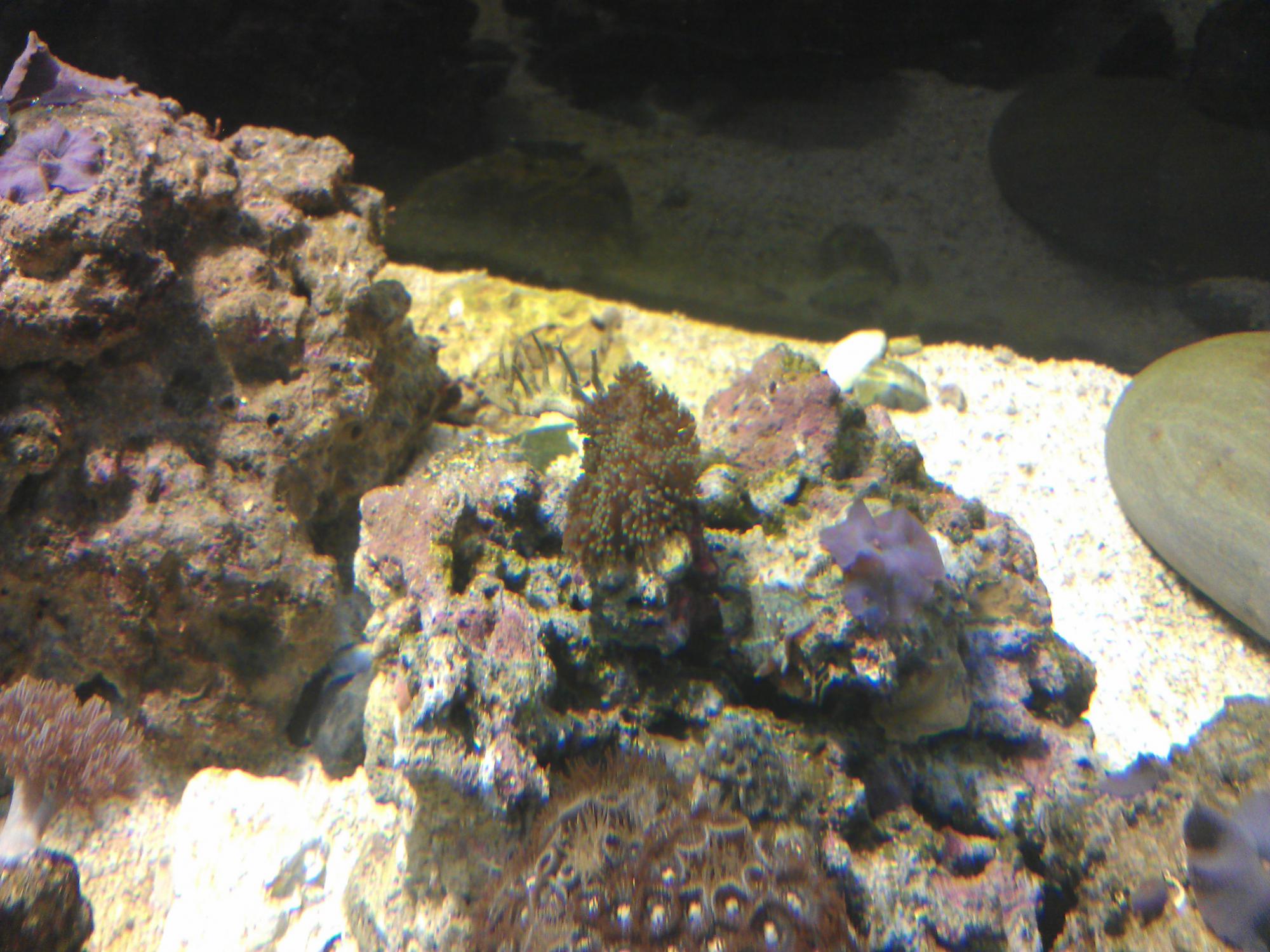 заселение сегодня добавилось 5 улиток, две рыбины 3 криветки , ёжик , коралы жосткие , и мяхкие счас попробую видео выложить.