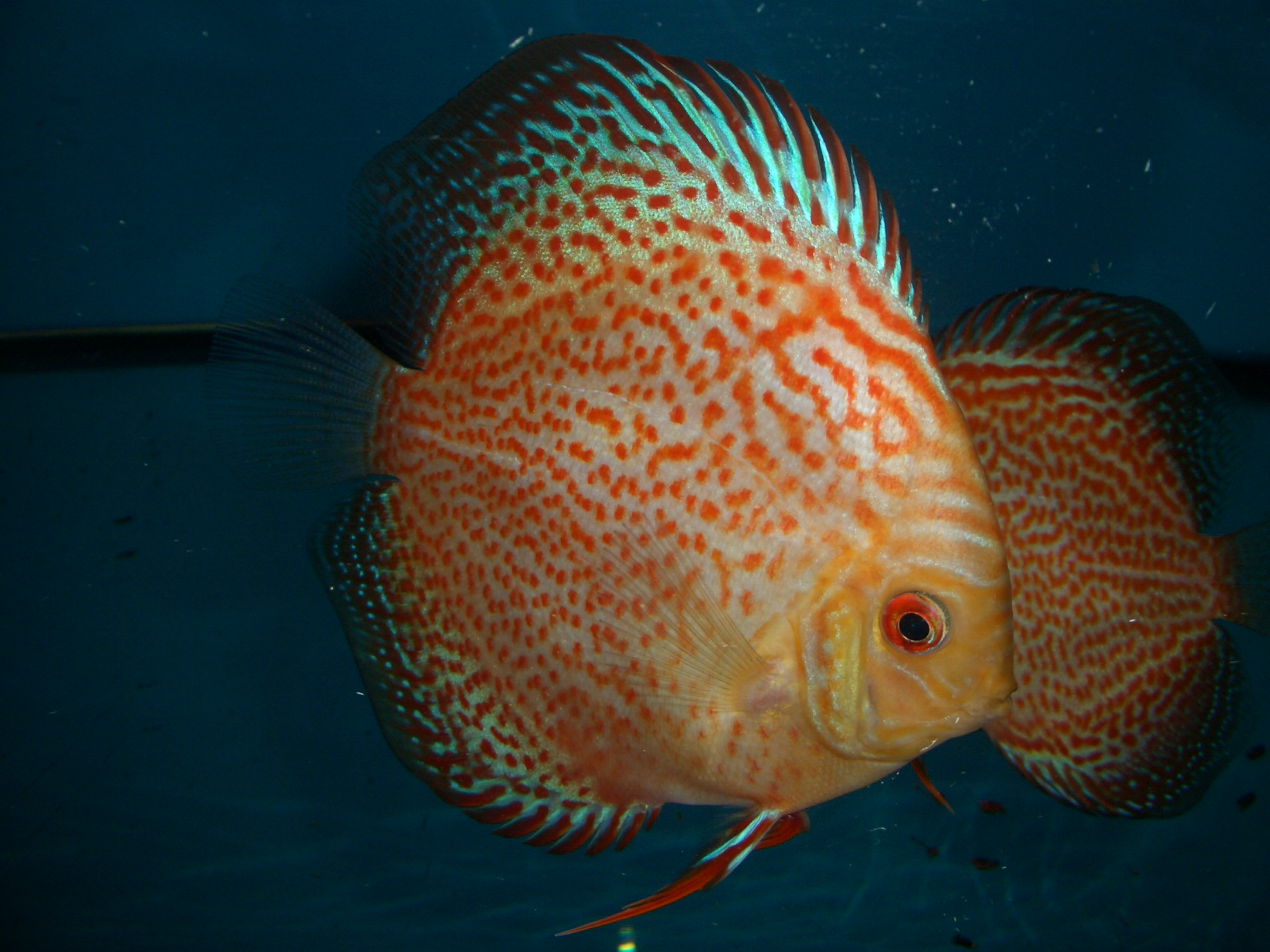 Леонид , Вы же заезжали ко мне и все видели своими глазами (правда рыба у меня с первой поставки а не со второй ) , могли бы и сами охарактеризовать эту рыбу , тем более Вы в свое время поимели богатый опыт в получении как элитной так и ширпотребной рыбы . С первой поставки прошло уже не мало времени и по идее фотографий должно быть много , но в этой теме за всех отдувается только один Игорь Ш . Мне особо хвастается нечем т.к. (по этому и фотографий по этому поводу минимум ) рыбы у меня не много но своими впечатлениями все же поделюсь ........ Приехав к Стасу за рыбой , пришлось выбирать из остатков (т.к. основное количество рыбы уже было продано ) . Рыбу я брал в основном для подмены "крови" ну и естественно из за имени "Lucky Tropical" . Тогда мной двигало имя " Lucky Tropical" и было все равно что рыба дорогая и окрас не совсем тот который ожидал ....... Сейчас , когда прошло время и я посмотрел на эту рыбу под другим углом , скажу Вам честно , я разочарован . А теперь по пунктам : 1) Golden Leopard - из троих штук только один сохранил свою оригинальную точку на остальных она размылась и смазалась , становясь с каждым месяцем все менее заметней а на одном вообще проступили " пиджиновские" мотивы . 2) Spotted Eruption ну не то это качество которое у них на веб сайте http://www.luckytropical.com.my/gall...ail.asp?code=E . 3) Промежуточный дискус для разведения Golden Leopard остается открытый вопрос до сих пор "оно это или нет " , гугл выдает совсем другую рыбу в качестве промежуточных ... 4) Проблемы с адаптацией рыбы тоже были . Дабы это все не звучало бла , бла , бла ............. подкреплю фото материал ......