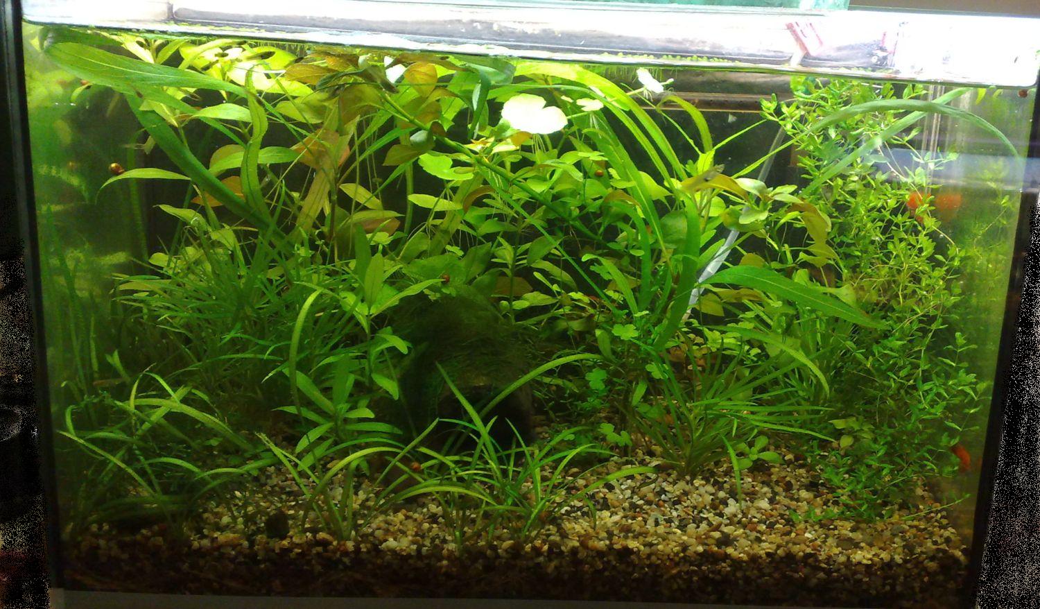 Ну и фото 12л. с менее щелочной водой, траве явно больше нравится, чем водопровод, но на фото мало что можно оценить, свет от светильника "слепит" сравнительно слабый обьектив телефона, но раз описывал - решил выложить, как-то так :-))