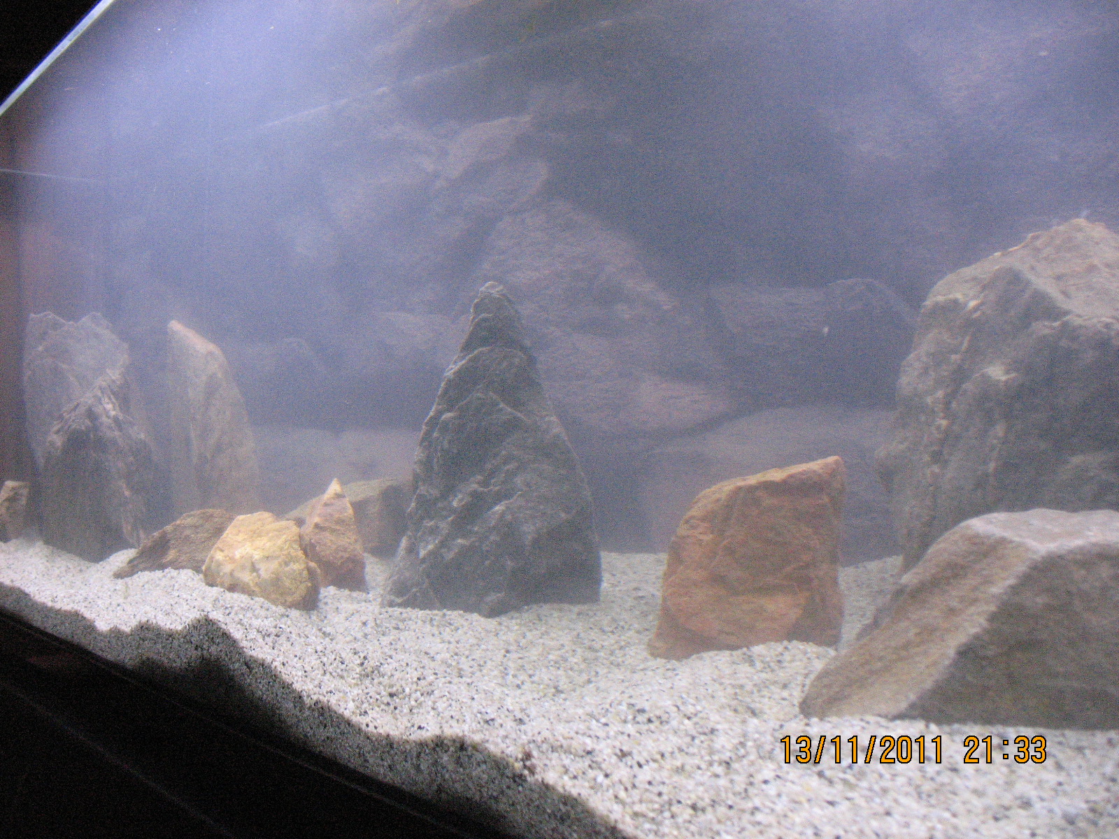 Вот такая картина после первичной расстановки камней и установки внутреннего фильтра.