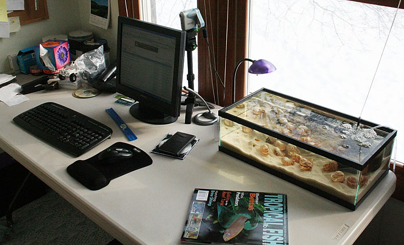 ну-ну. Советую почитать о фронтозах, о минимальных аквариумах для них.