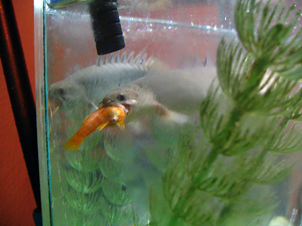 ...взрослые мелкого не трогают?... Хотя, у меня мелкого сенегальца (ок. 15 см. ) старший брат гоняет, а дельгейзи, который кратно крупнее и мелкого и большого вообще на них ноль эмоций (правда, они стараются от него подальше свалить, когда он вылезает на поляну, где креветки разложены). Выглядит так, как будто у них только внутривидовая агрессия, а к другим полиптерусам ровно.