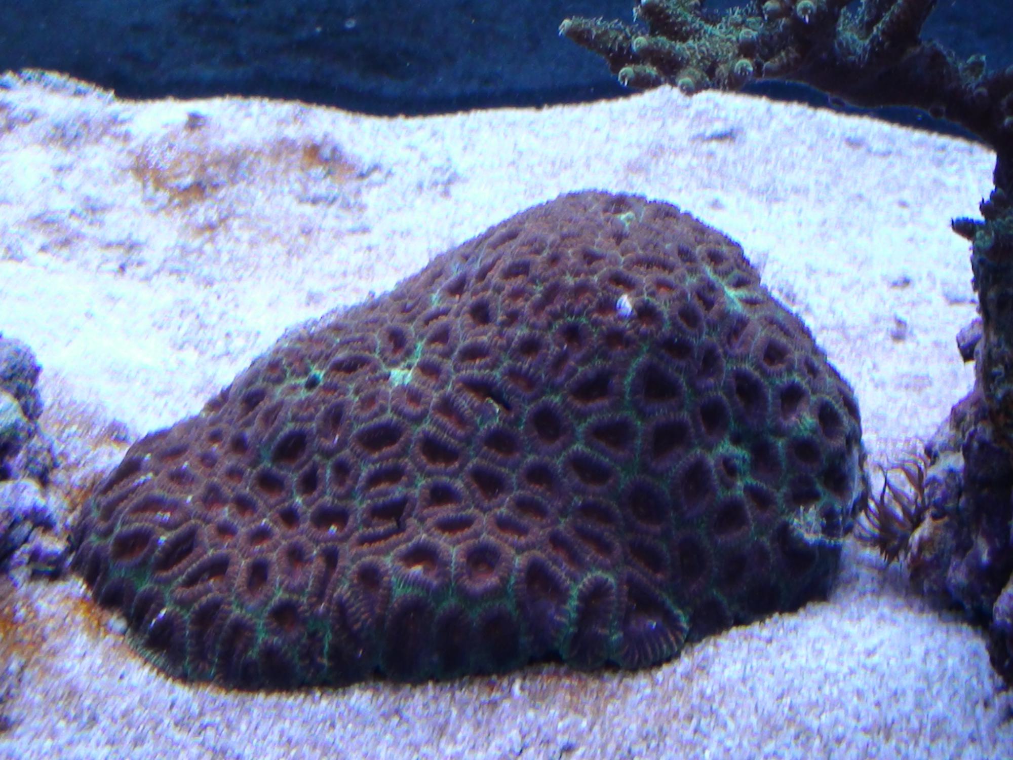 коралл фавитес, незнаю чего вдруг у тебя такая проблема с ним возникла, у меня они с самого начала на песке лежат радуются, ну раз такая проблема-сделай под ним течение, прислони к камню, может бактериалка какае- то? сделай ванночку в люголе, авась всё наладится