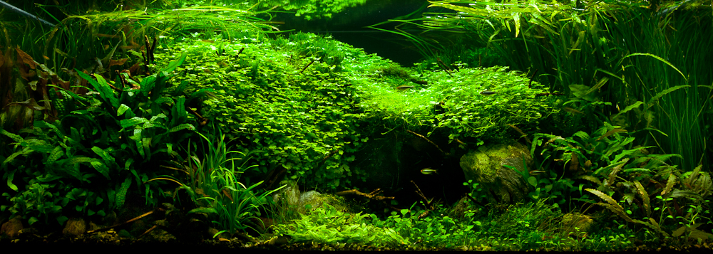 Ну раз мой аквас попал на конкурс "аквариум месяца-апрель" то о нем поподробнее))тем более что его хардскейп учавствовал в предыдущем конкурсе под наз."тропою легенд".С той поры из изменений произошло только то что была убрана нимфея и добавилась почвопокровка))но основным моим преобретением стала гидрокотила трипартита,это с помощью ее удалось создать такой рельеф))все остальные параметры остались без изменений,только стал отдельно добавлять железо 10мл в день.Т.о тропа легенд мутировала в скейп под наз."логово зверя"