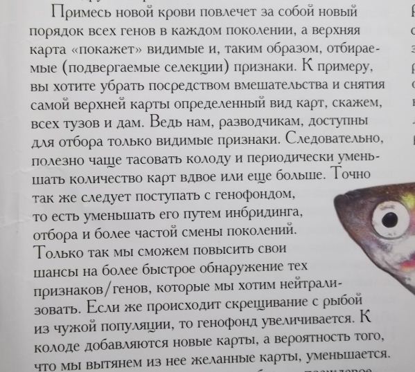 Спасибо за сноску. Сколиоз или лордоз встречающийся у некоторых линий в породах гуппи , меченосцев и др. Это не летальное генетическое заболевание - присутствующее в линиях в рецессивной форме. Как только рециссивные аллели сходятся - получается рыба от рождения подверженная сколиозу. У меня в одной из пород мечей до 20% потомства приходится отбраковывать. Ниже интересная статья об этом /см. фото/. В некоторых породах селекционеры это перевели в гомозиготное состояние - дисковые пецилии ,молли баллоны , дисковые Рамирези , дисковые жемчужные гурами и тд. Еще раз благодарю за сноску - абзац № 5 - Вы развеяли мои сомнения : " Иногда самки заболевают сколиозом , после вымета мальков , что , видимо , связано с резким изменением внутриутробного давления ".