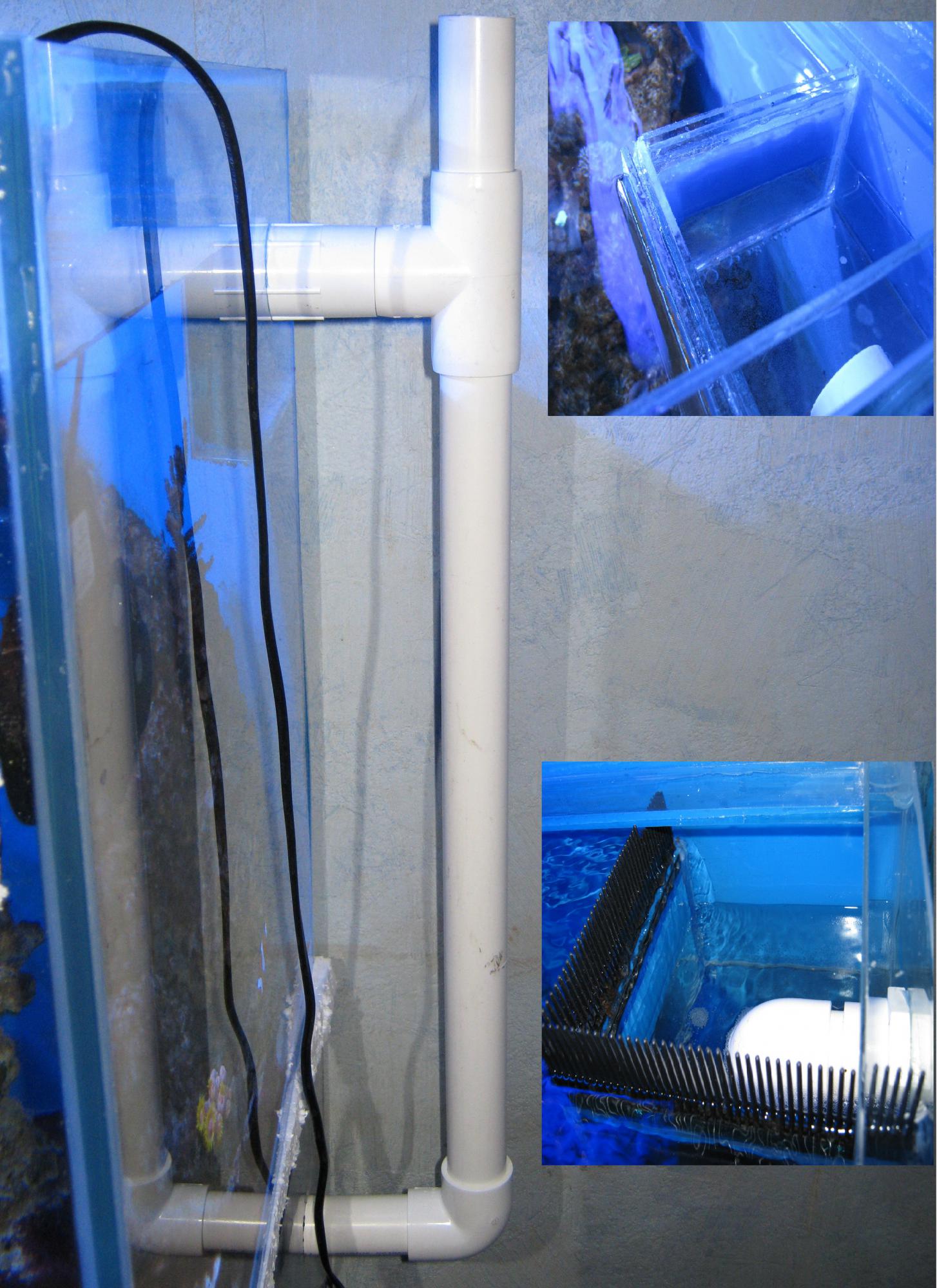 Сегодня организовал слив  .Труба 32 пвх клей.Стенки кармана сделаны,как у CaNeK,из трех стекол(между ними приклеен оракал) и между стекол отлично ставится расческа Возврат вывел посредине аквариума.Труба 25 под пайку И старый самп.Последний кусок трубы(после крана )не приклеил,не знаю он должен быть выше уровня воды в сампе или погружен?