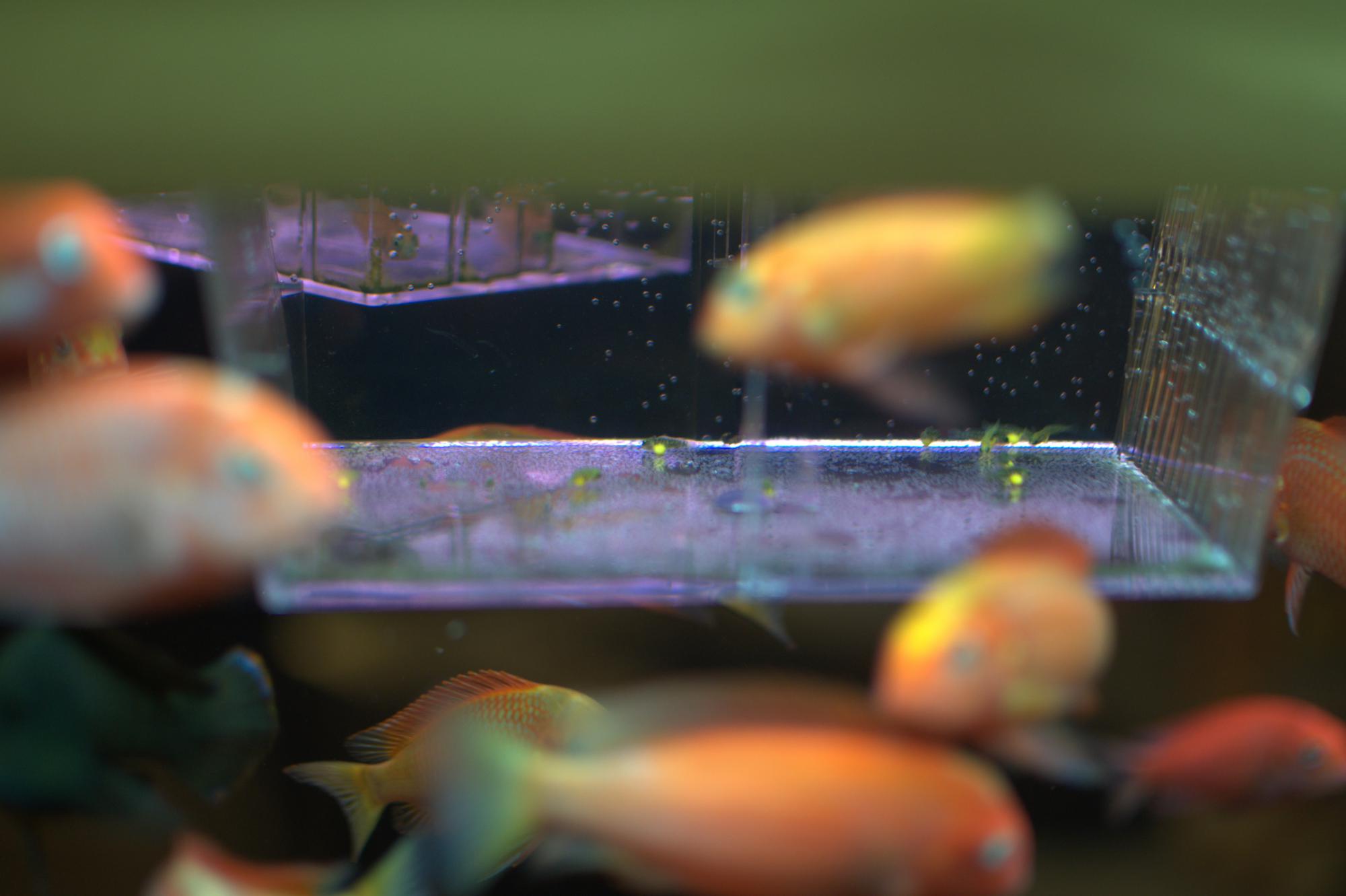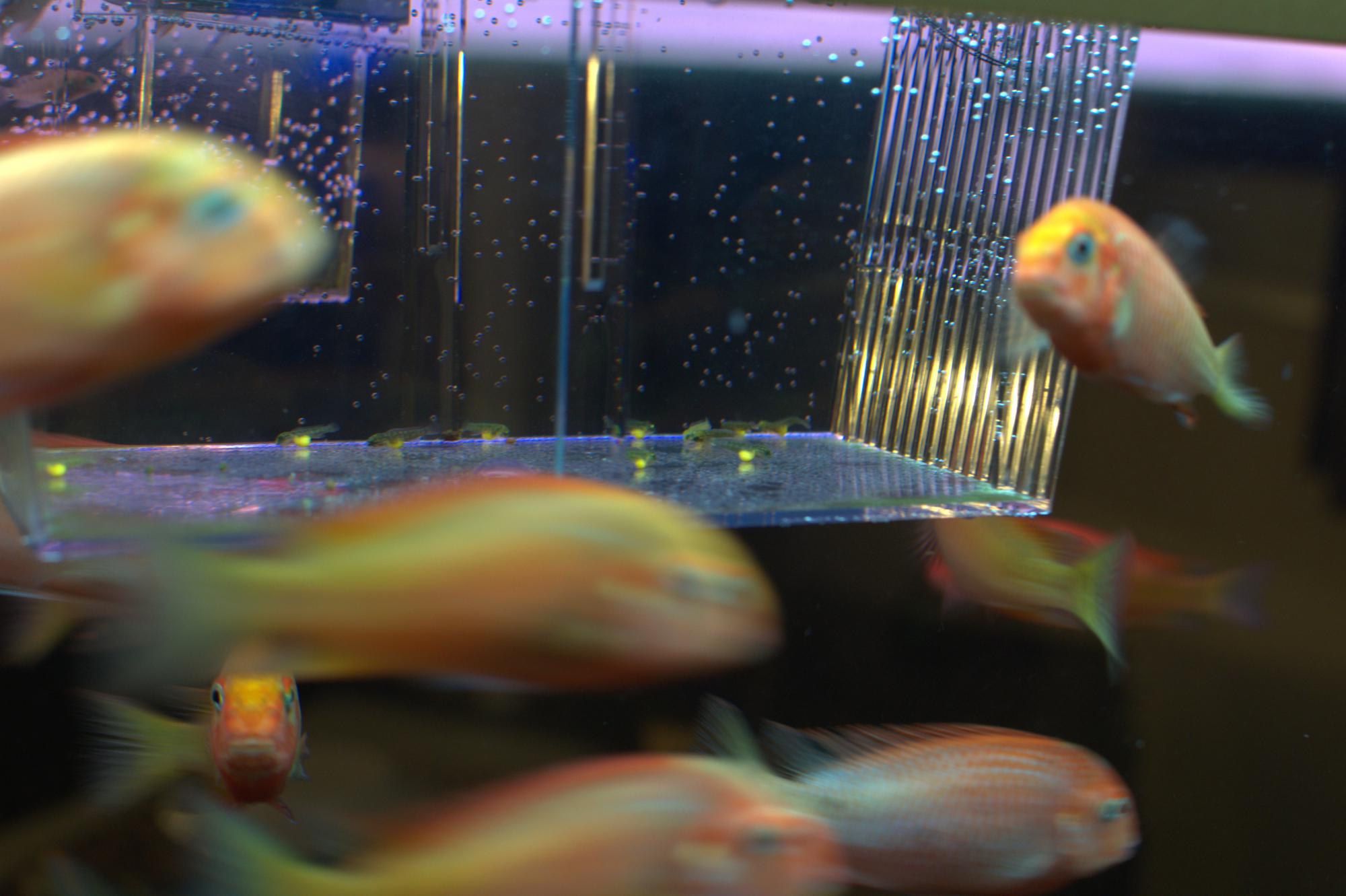 По немногу размножаются Эрики - живет 1 пара, периодически любят друг друга, периодически не очень. При нересте всего было 22 малька, но сам дуплянул - 11 мальков (самых видать расторопных) сбежали в акву (вечером обнаружил утечку ). Оставшиеся 11 понемногу растут.