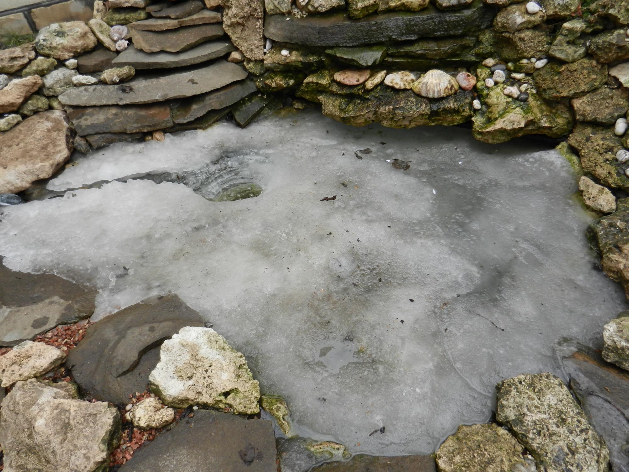 Начну с маленького... глубина 0,5-0,6м. Вопреки, моим ожиданиям, мелочь там выжила, около 90%. Даже лягушка, каким-то чудом осталась живая. Где она там зимовала и как - ума не приложу. Большую часть воды откачал в емкость, вытянул все камни, всех рыб. Всё перемыл керхером начисто, почистил насос, мочалки и прочее. Всё заново сложил, вернул родную воду + долил свежей. Всё красиво, рыбы курсируют у дна или в камнях, вода кристально чистая.