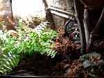Грунт кокос сантиметров 5-6. Терр 30х30х30см Экзотеровский. Ветки повтыкивал, сверху половину какоса прицепил, типа гамака аолучилось. Лампа энергосберегалка. Вода, пару кустов папоротника. Что не так подскажите...