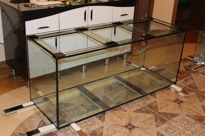 Вчера приклеили аквариум (дшв 140x50x60 см) из силикатного стекла 10мм.