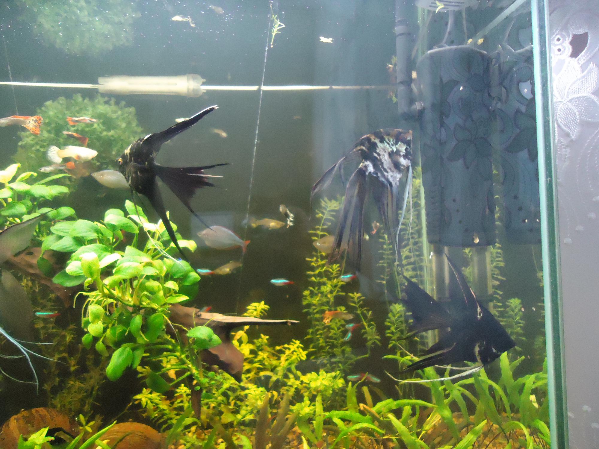 Добрый день, у меня живут 4 скалярии, им почти год, возможно уже видно кто из них кто? Подскажите пожалуйста