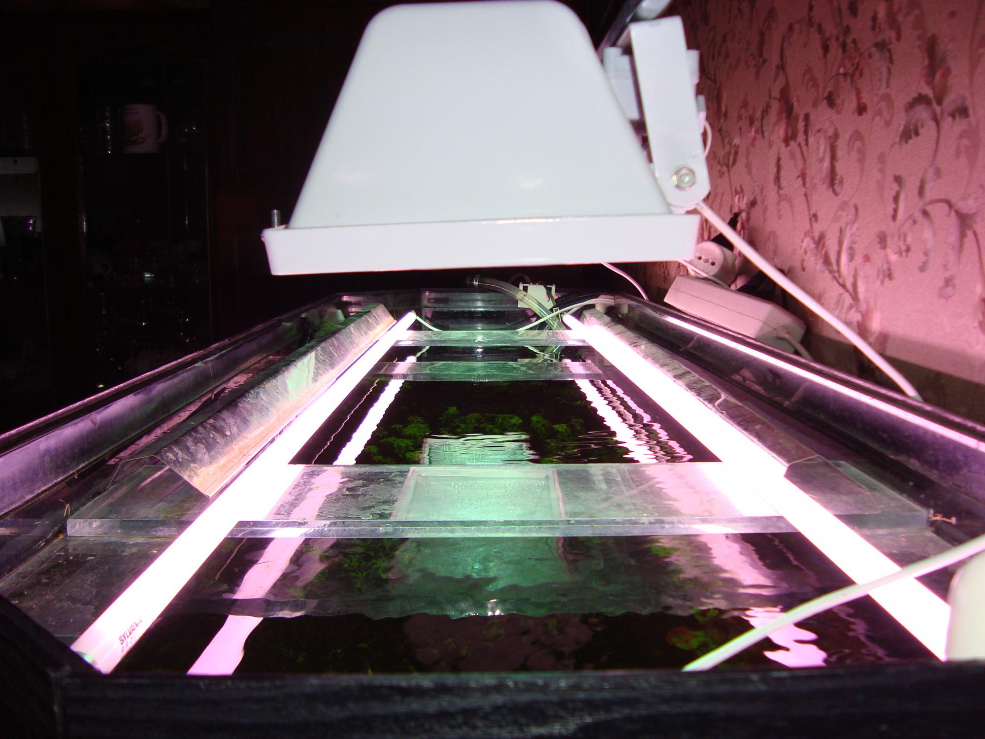 3. Освещение: осрам флора 18 Вт, лампа 6500к 18 вт, 2х економки по 13Вт 2700к, 12-14 годин