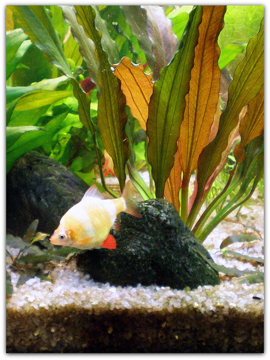 Часть растений (в основном длинностебелька и мхи) пришлось выбросить) За этот период на эхинодорусах появились новые листики, афлейм с перепугу выбросил два))) Из рыб издохла одна данио хопра, остальные все живы.